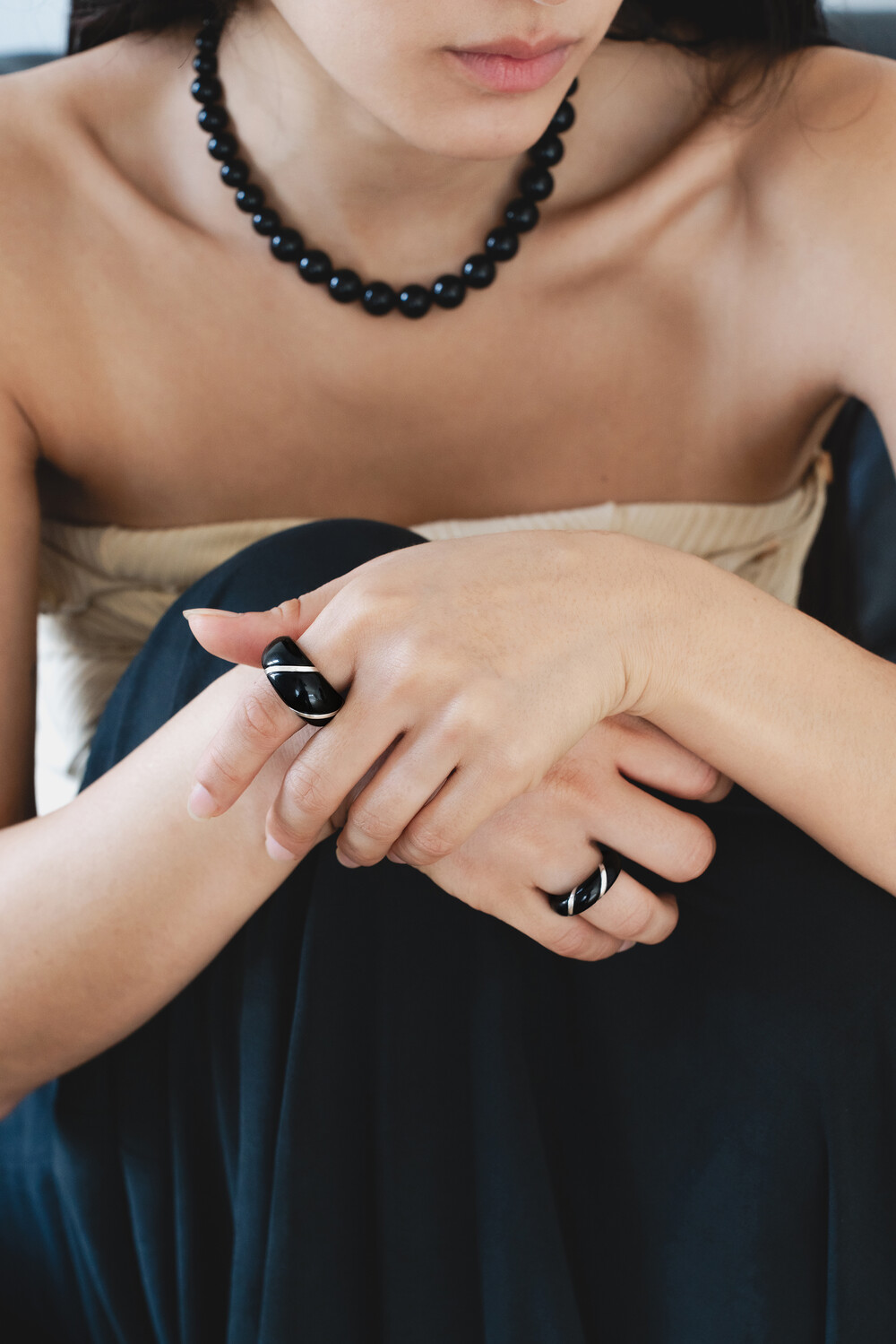 천연 오닉스를 세공하여 제작되는 링입니다.