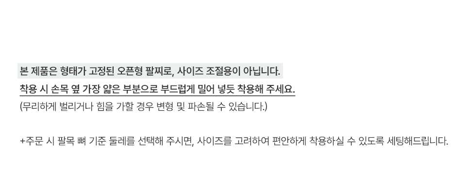 **주문 시 팔목 뼈 기준 둘레를 선택해 주시면, 사이즈를 고려하여 편안하게 착용하실 수 있도록 세팅해드립니다.