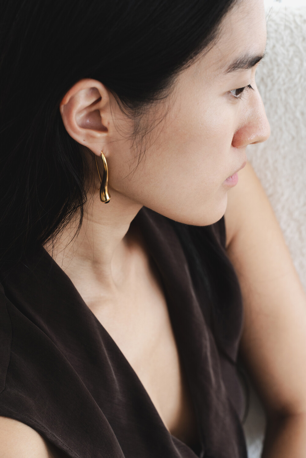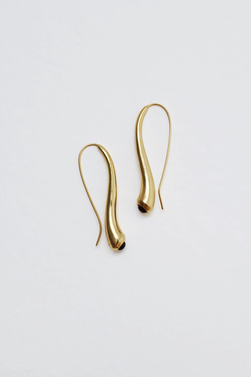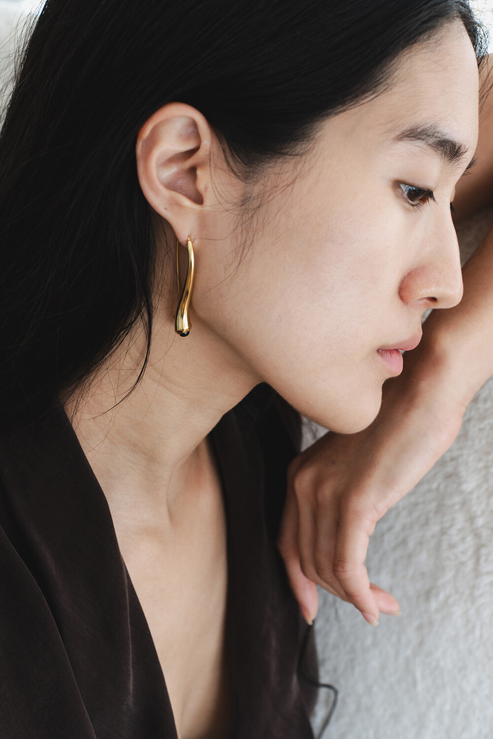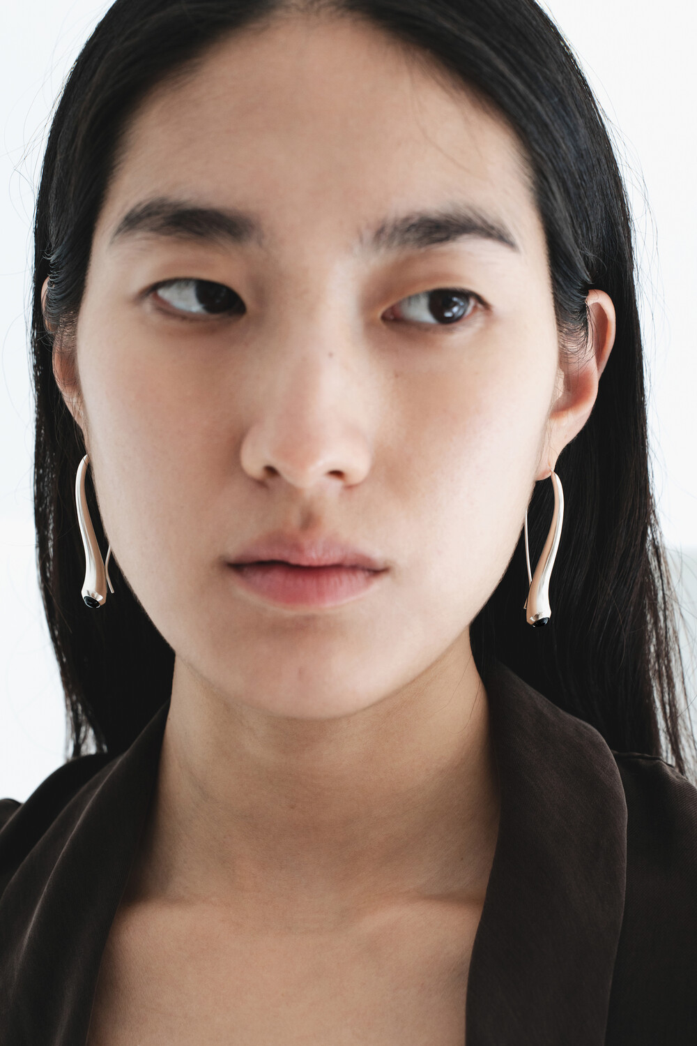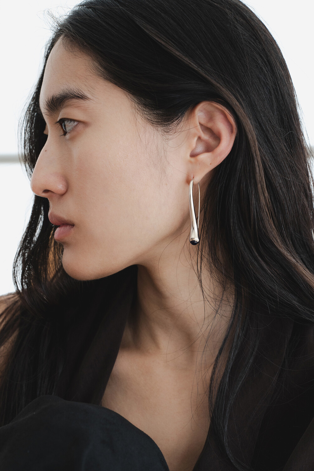 길게 뻗은 곡선 끝의 오닉스가 고요하게 빛나는 이어링입니다. 섬세하게 이어진 라인과 은은한 광채가 일상에 우아함을 더해줍니다.