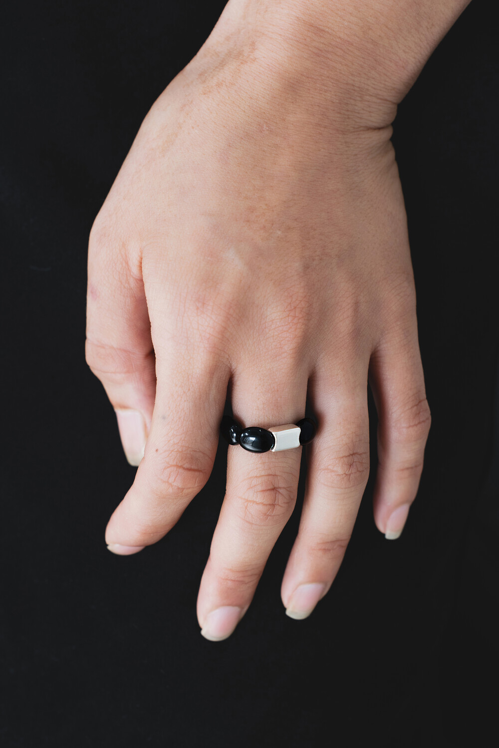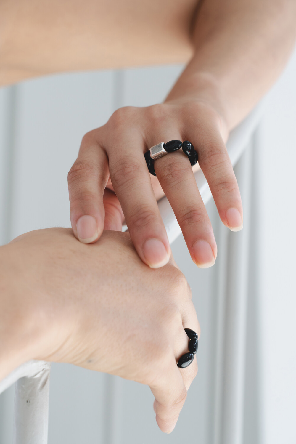타원형 오닉스가 하나씩 꿰어진 링입니다.