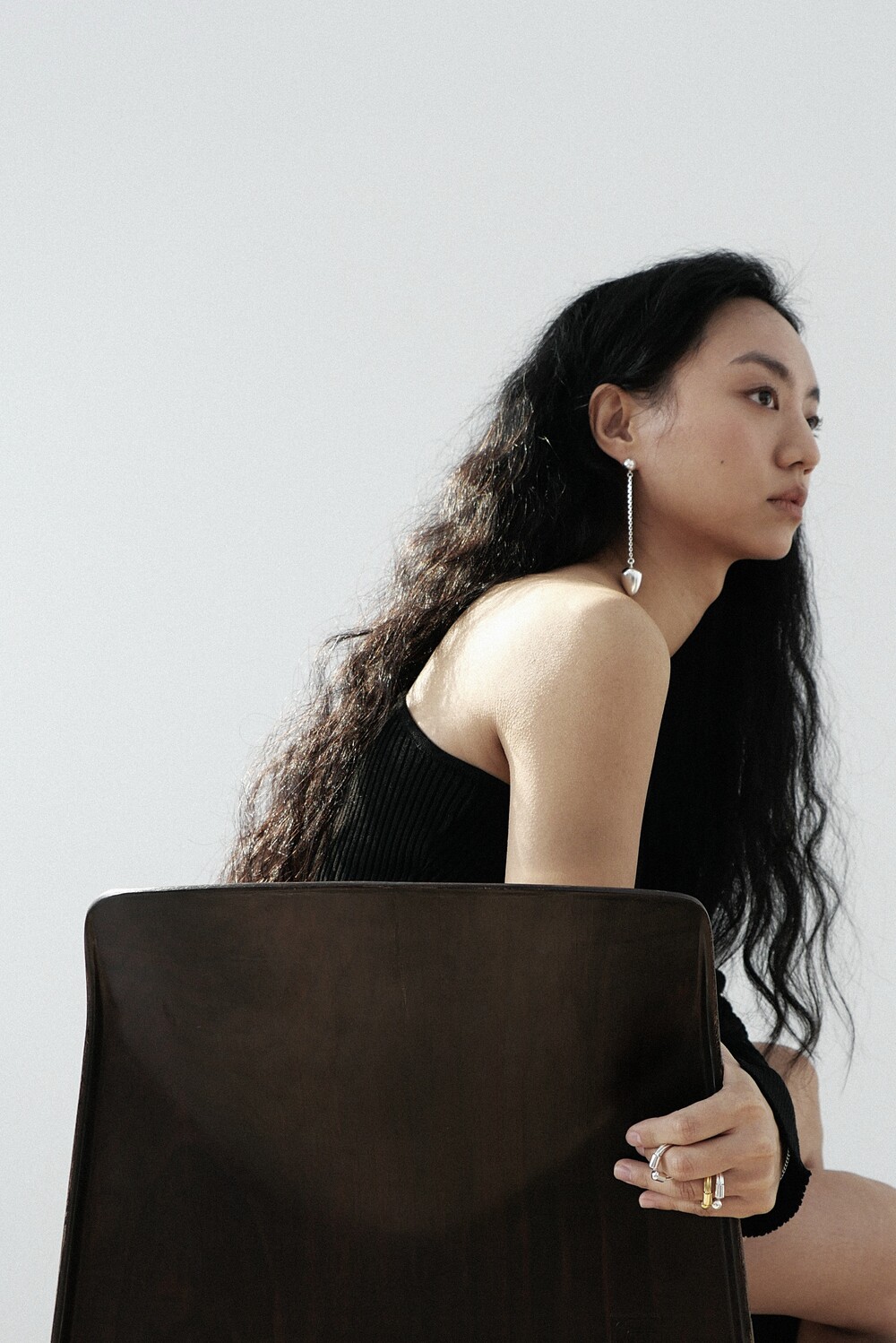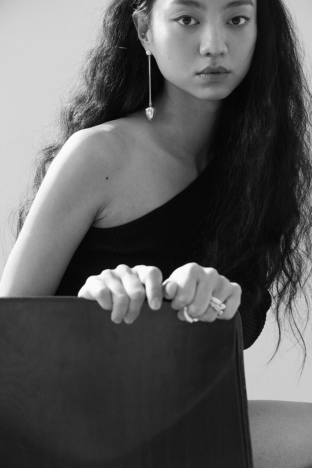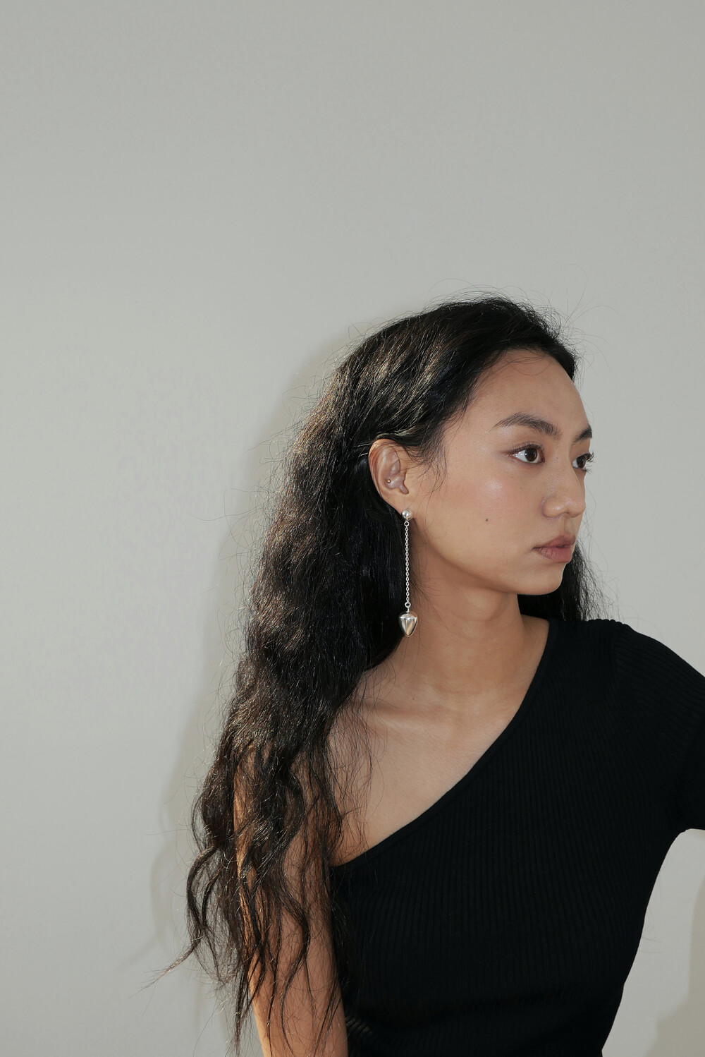 체인 끝에 맺혀있는 볼드함이 매력인 드롭 이어링입니다.