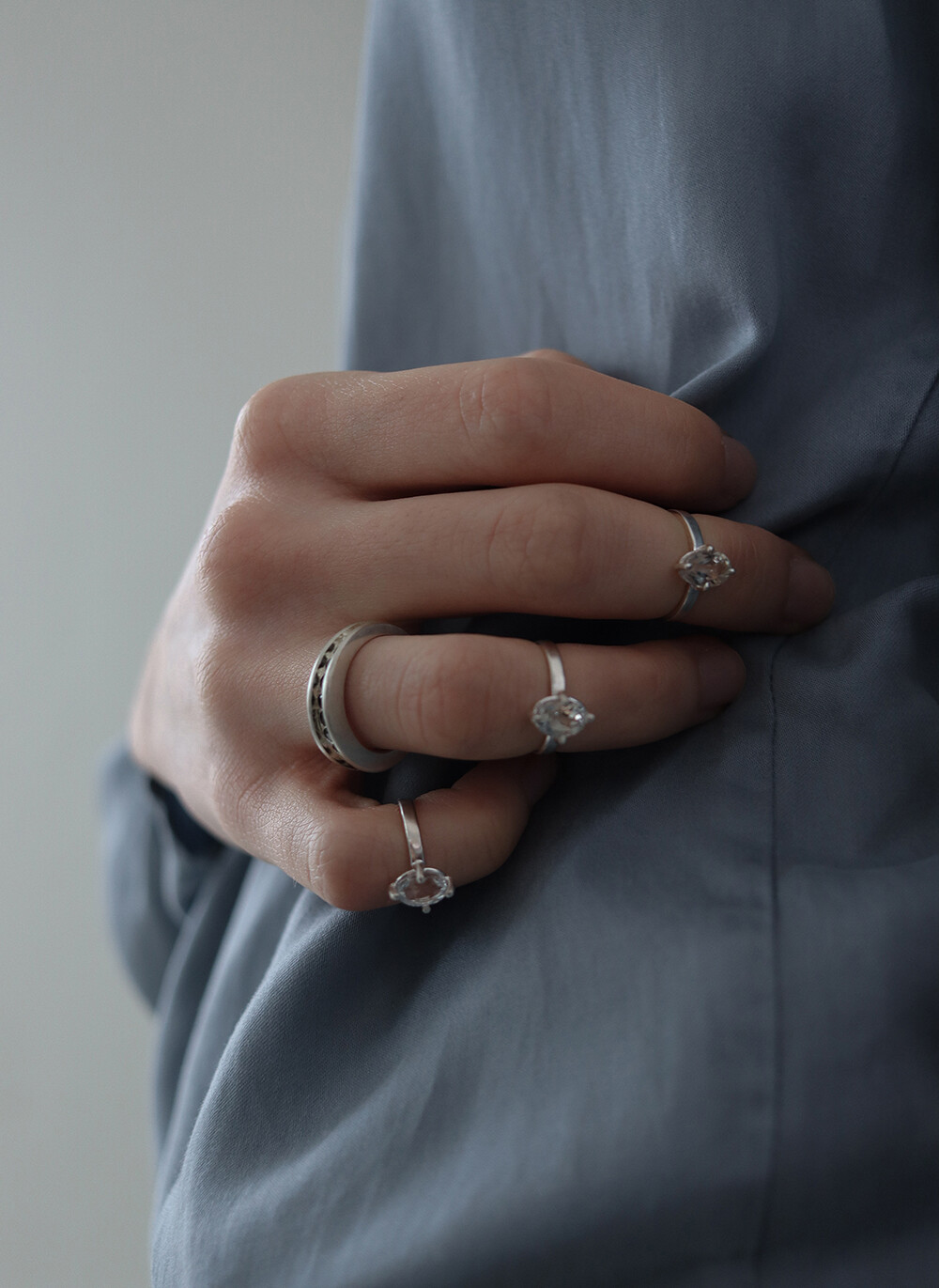 손가락에 눈이 내려앉은 듯한 분위기를 연출하는 링입니다.