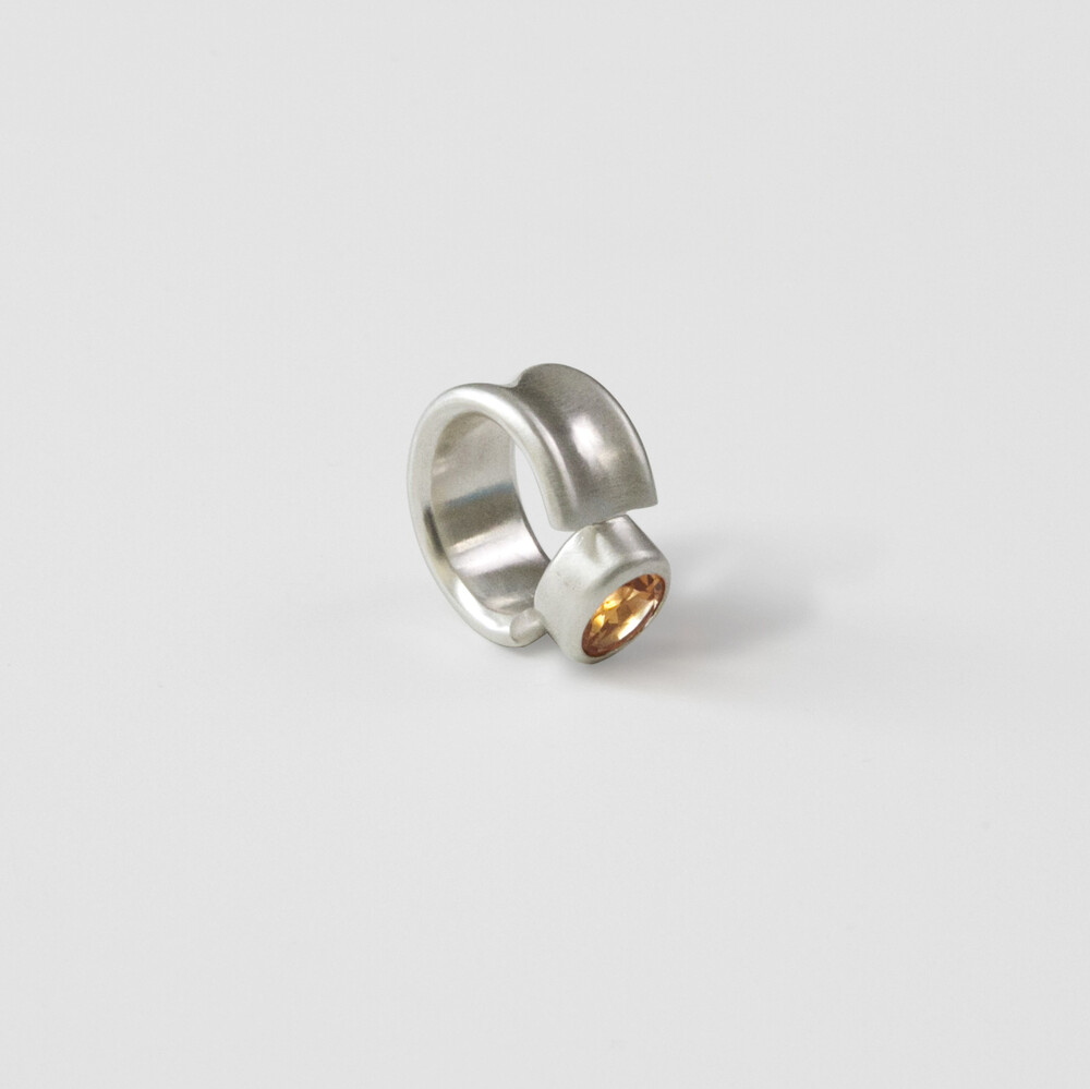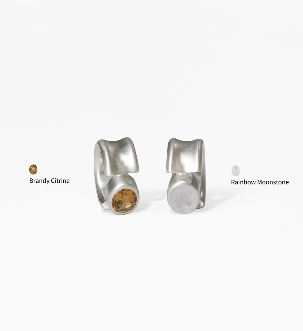 웨이브지는 곡면의 깃 사이에 오벌컷의 원석으로 포인트를 준 원석 반지입니다. 매트하지만 부드러운 표면으로 마무리했습니다.